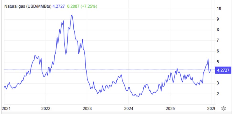 Energy is a commodity area where divergence in 2026 is quite visible. Natural gas, for example, has many different markets around the globe. While natural gas is a byproduct of oil production and often gets lumped into the same investor “energy” allocation basket, its fundamentals and what drives its price complex are radically different from those of crude oil.