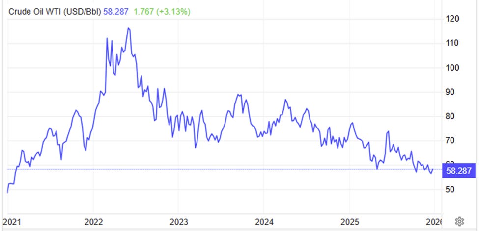 For crude oil, while the globe is currently well supplied with crude, there are a few places on the globe that have the ability to inspire large impulse moves in the price of oil. Any sudden shift in thinking about oil production changes in the Middle East, Russia, Iran, or Venezuela could cause price volatility in 2026. Looking longer-term, there is a potential swing factor on the horizon that many are not yet factoring into their calculus: technological progress in Chinese shale extraction could eventually reduce the marginal call on seaborne imports. If sustained, such a development can act as a structural headwind for oil prices by weakening a core source of incremental demand. The broader point is not that oil “cannot rally,” but that structural supply innovation in a major importing country can change the ceiling, even if geopolitical risk can still create episodic spikes.