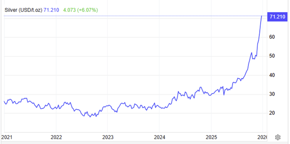 The strategic takeaway is that silver may behave less like a “poor man’s gold” and more like a tight industrial input whose price can be forced higher by supply-chain stress — especially if demand from AI buildout continues to surprise.